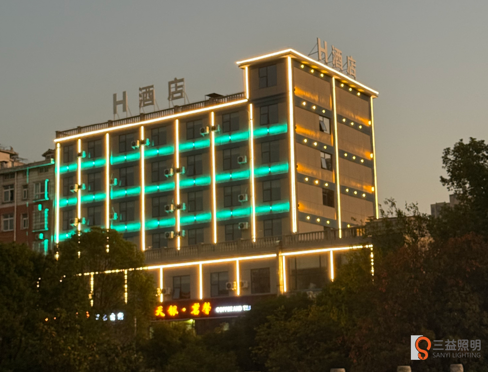 沅江H酒店是益陽沅江中高端商務(wù)酒店,外墻亮化工程旨在提升酒店辨識度,提高酒店人氣。